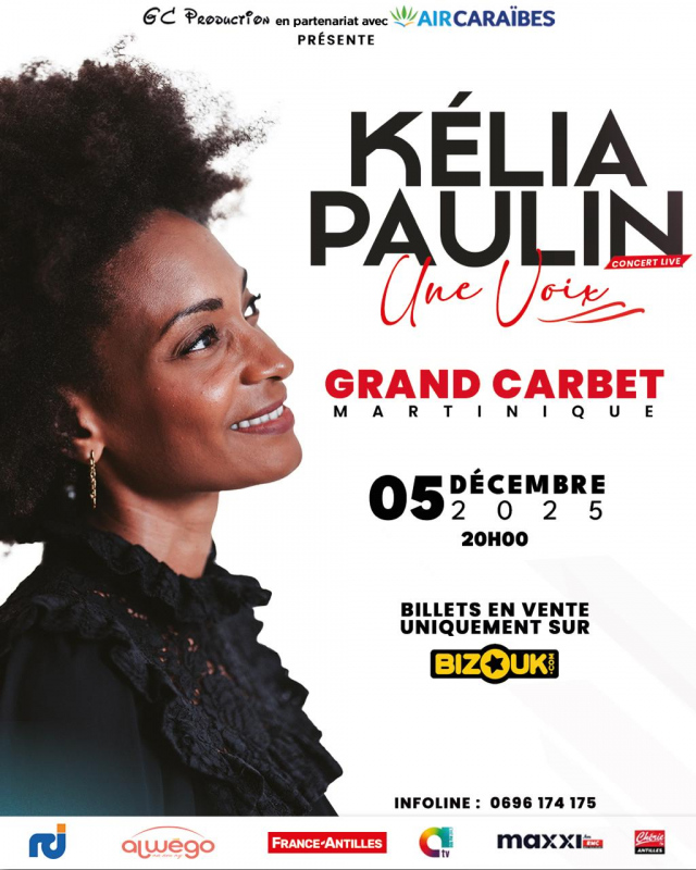 Le 5 décembre 2025 au Grand Carbet à 20h. Rentrez dans son univers où se mêlent sensibilité, humanité et bonté. Kélia Paulin, la voix !